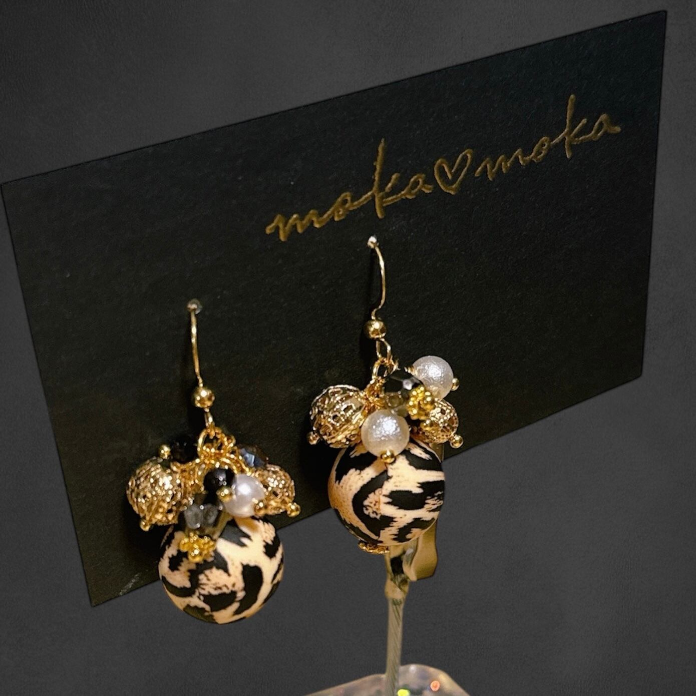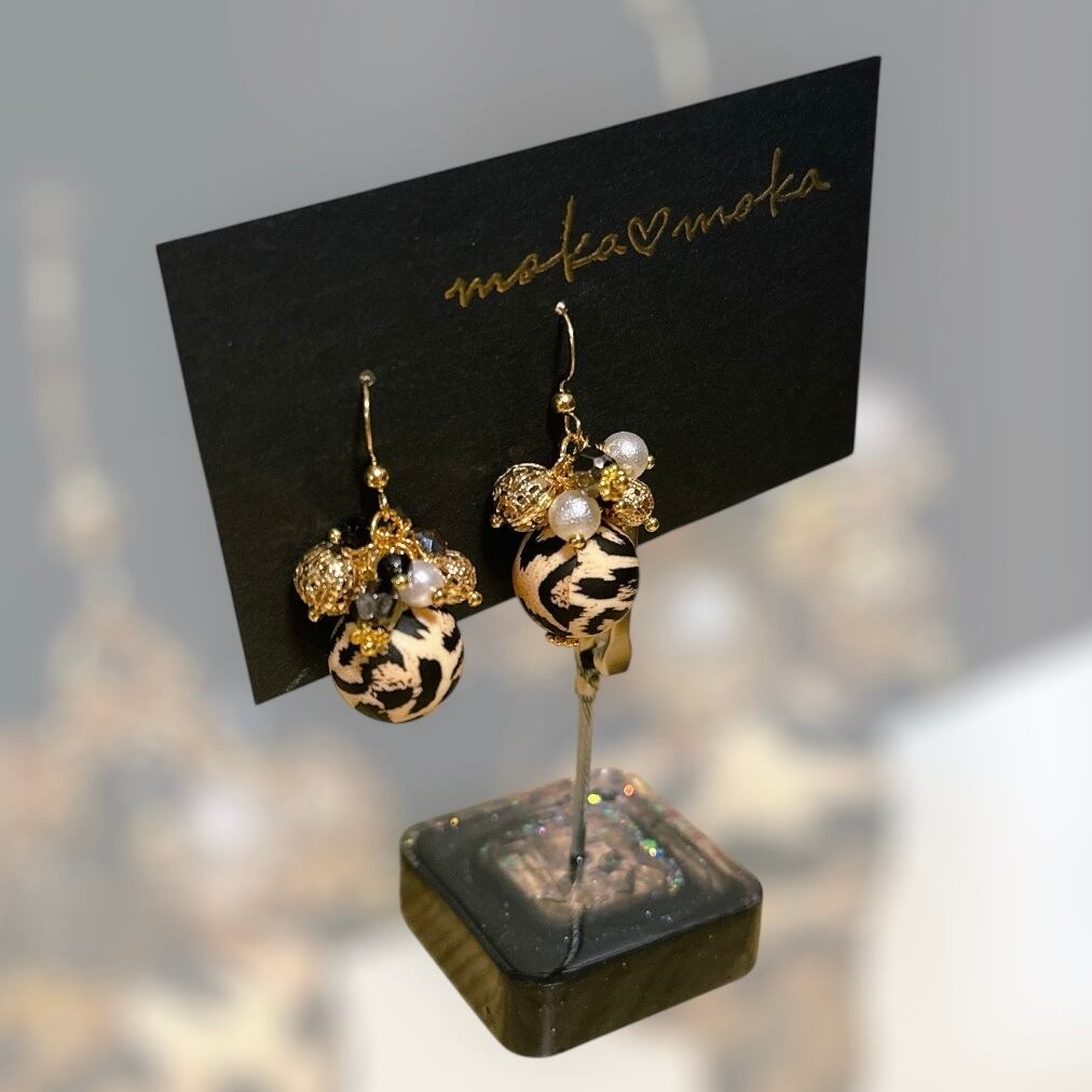 華やかなヒョウ柄とゴールドの組み合わせが魅力的なピアスです。