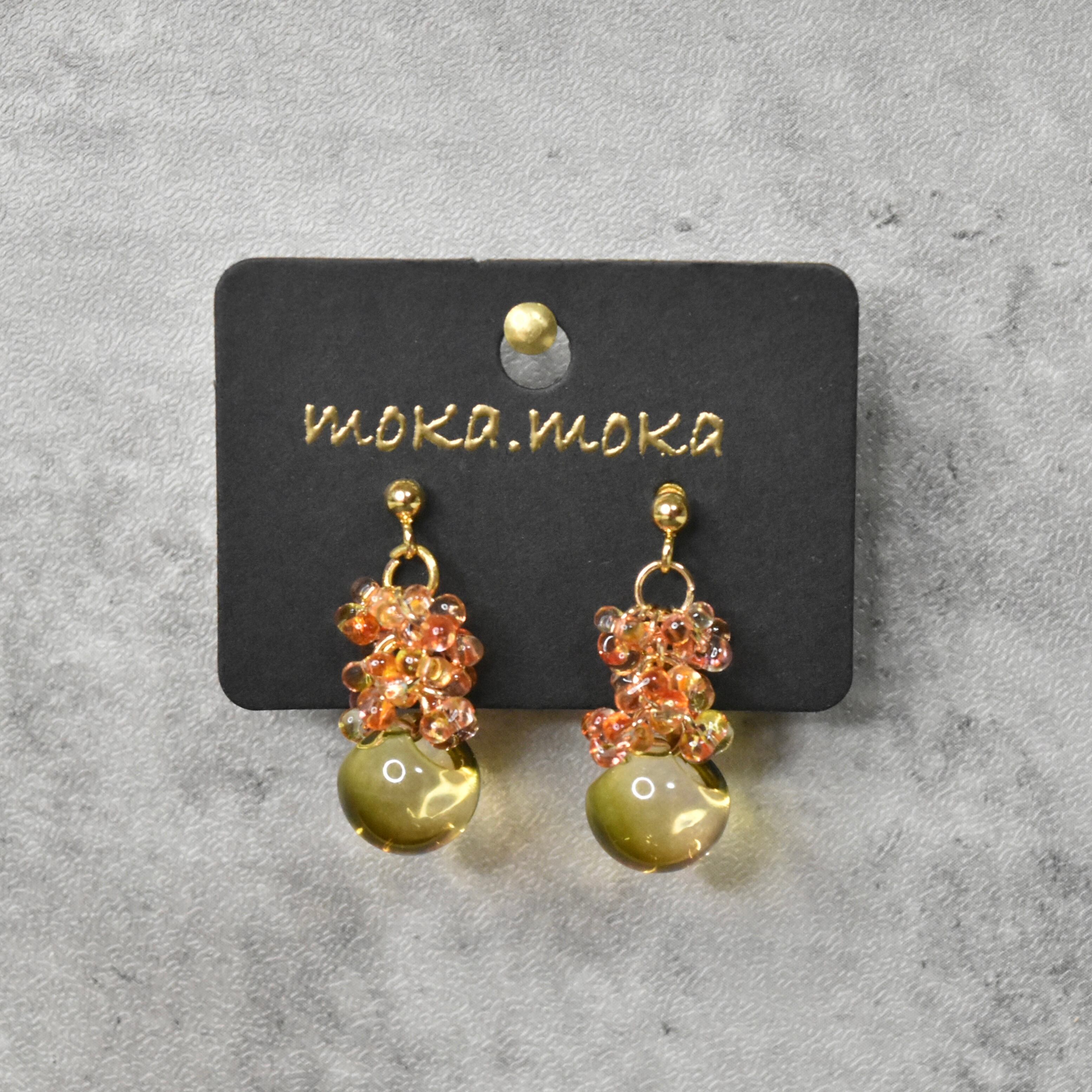 ガラスビーズが揺れるピアス。