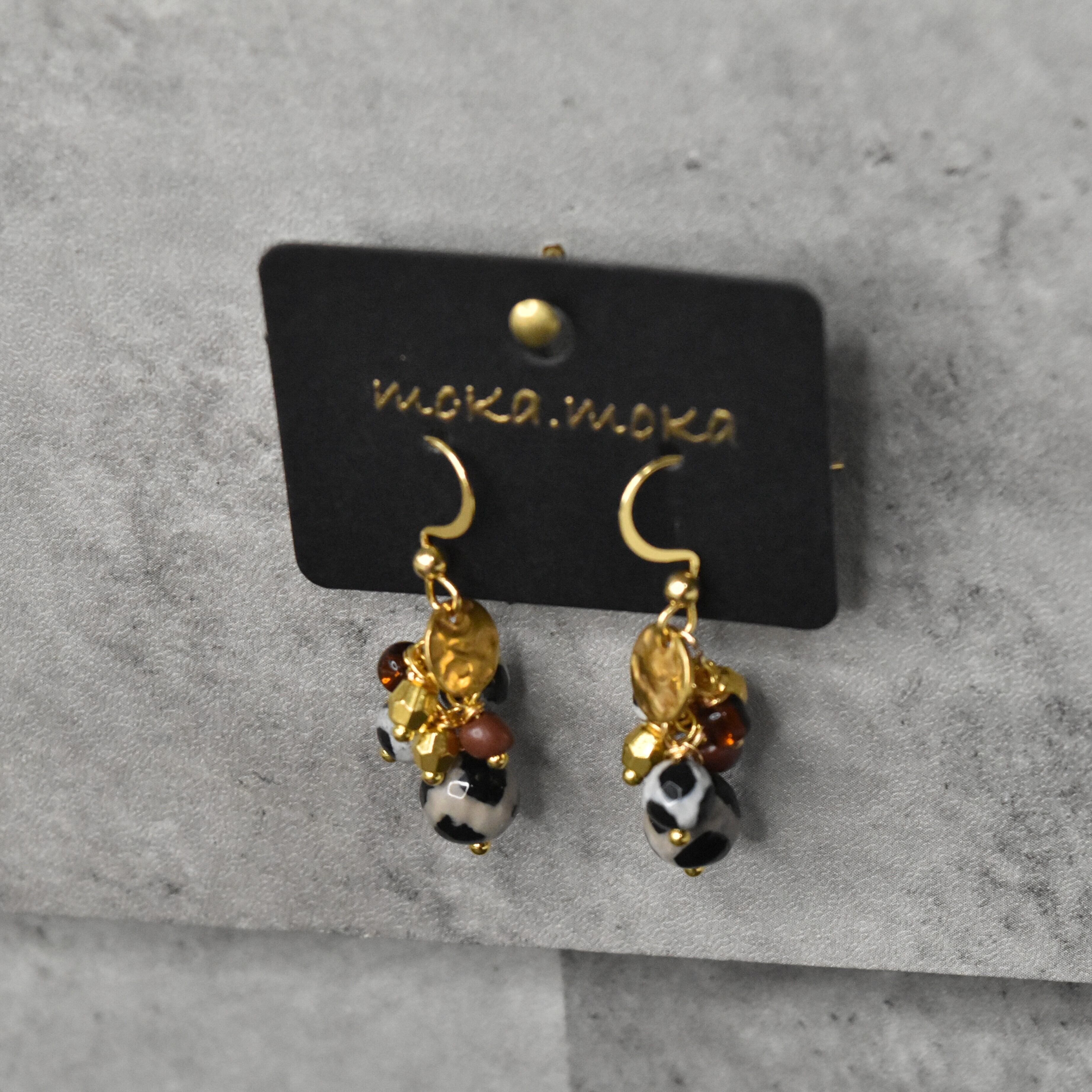 お洒落なモノクロビーズと茶系のビーズに