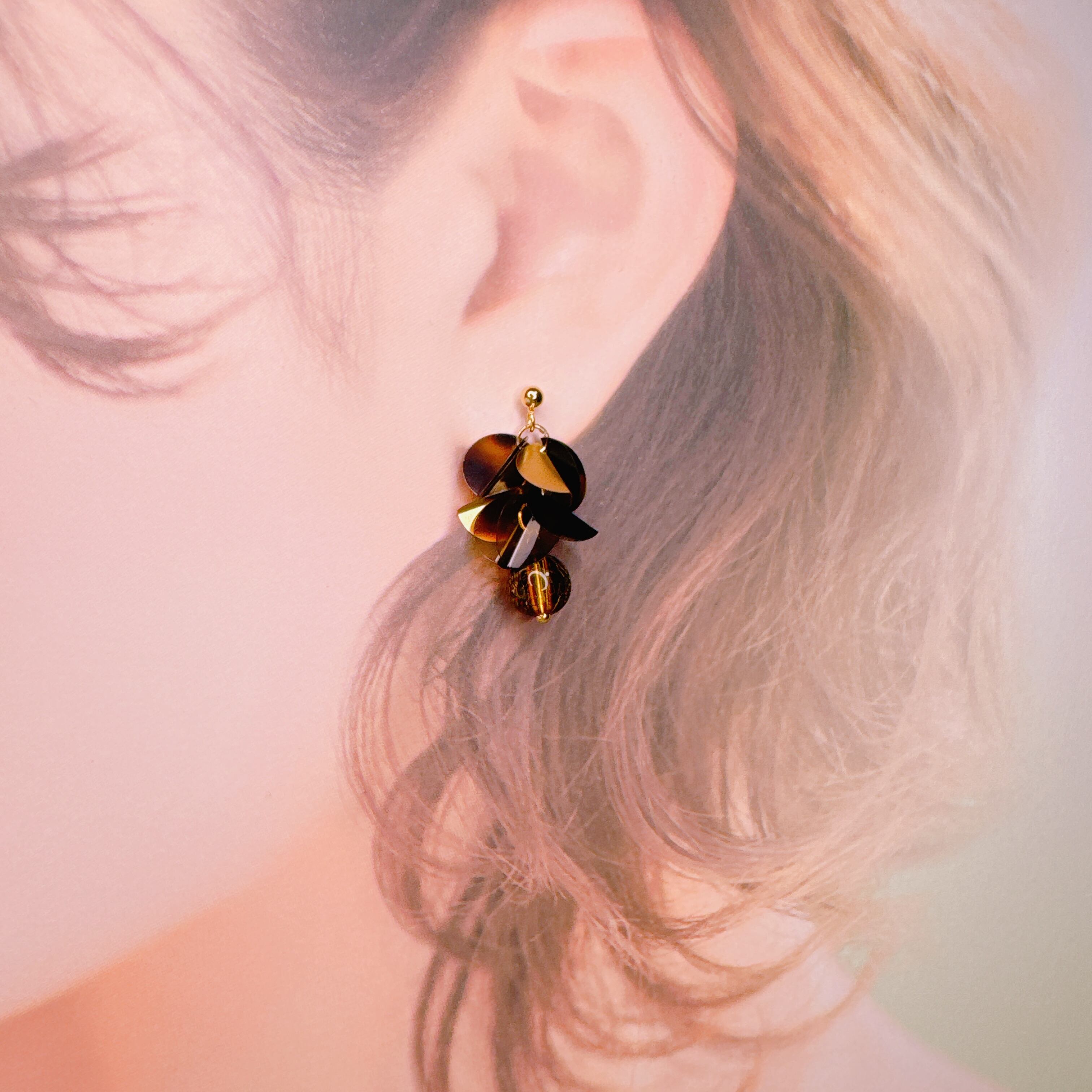 べっこう柄のスパンコールが重なり合い、